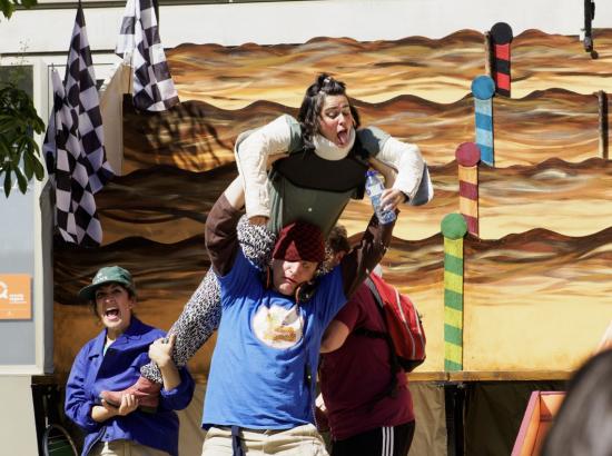 entre el públic. Només aquells que encertin les boles als forats correctes faran avançar el seu genet. Però compte: aquí mana l’absurd, les normes ballen soles, i els camells... bé, els camells fan el que volen!Un joc gegant, una cursa descontrolada, una festa per a totes les edats.
