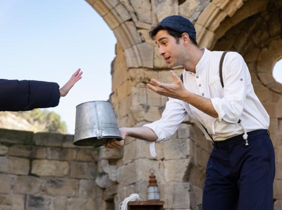 Unes gotes imaginàries es converteixen en ritmes constants de sorpresa, revelant una coreografia d’imaginació i fantasia que porta aquesta creativitat a jugar amb l’absurd. Una tassa que apareix, un fluir de monedes inquietes a les butxaques i culleres que no deixen de sorgir a borbolls de les mànigues.