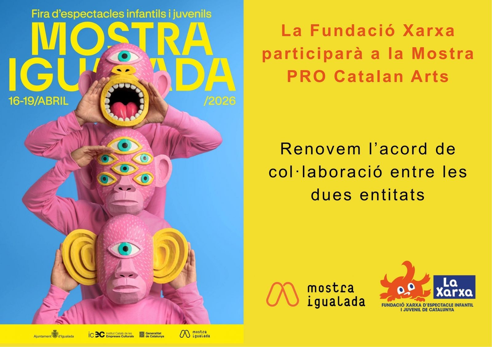 La Mostra d'Igualada i la Fundació Xarxa seguim renovant l'acord de col·laboració per facilitar que totes les persones que formen part de La Xarxa puguin gaudir de la fira i descobrir noves propostes escèniques