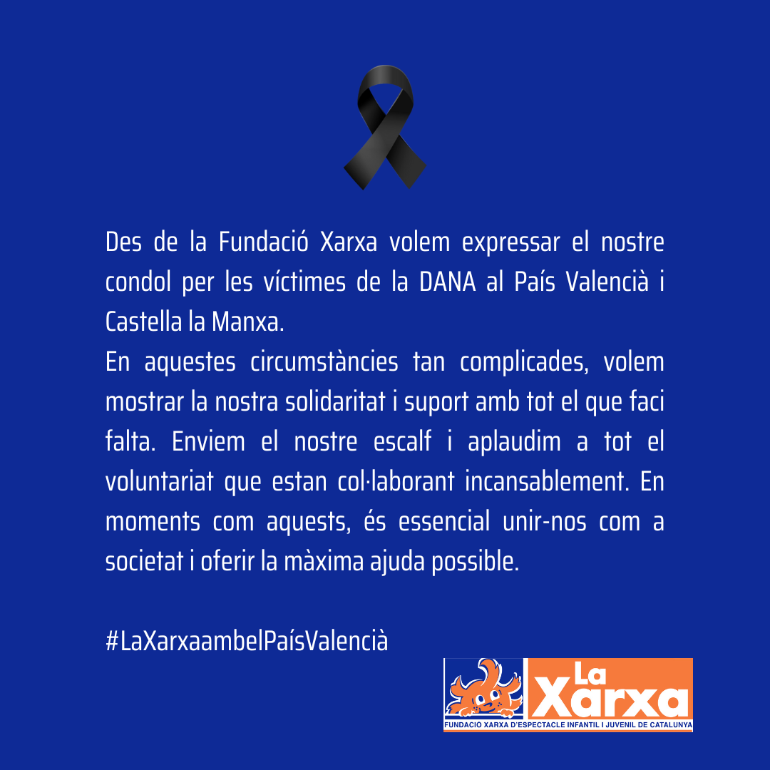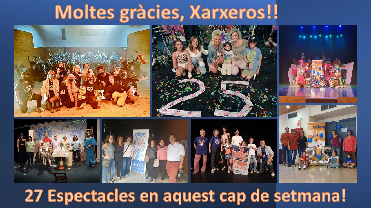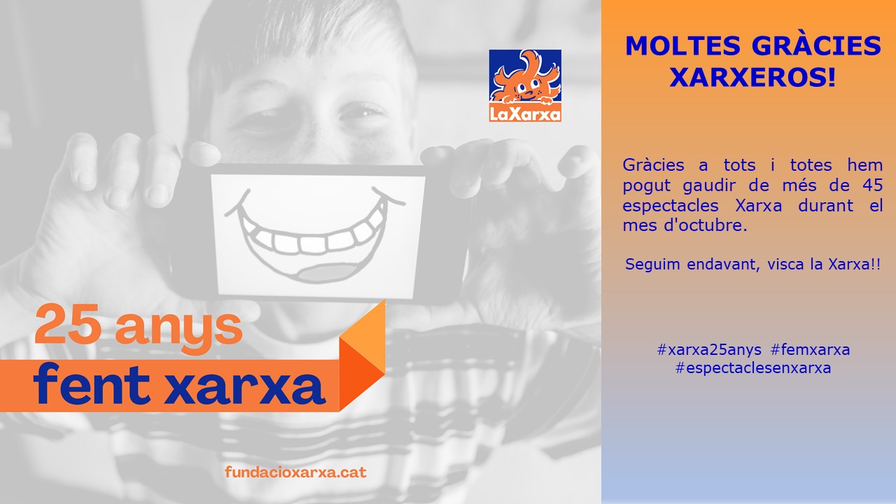 Moltes gràcies a tothom que composeu les 338 persones del voluntariat de La Xarxa per tota la vostre tasca i fer possible aquesta màgia que es produeix quan un infant i família miren un espectacle omplint el seu cos i mirada d’emocions, il·lusions i coneixement. Les arts escèniques ens reformulen i ens fan créixer arribant a on no poden arribar amb les nostres paraules. Per tot això, moltes gràcies!