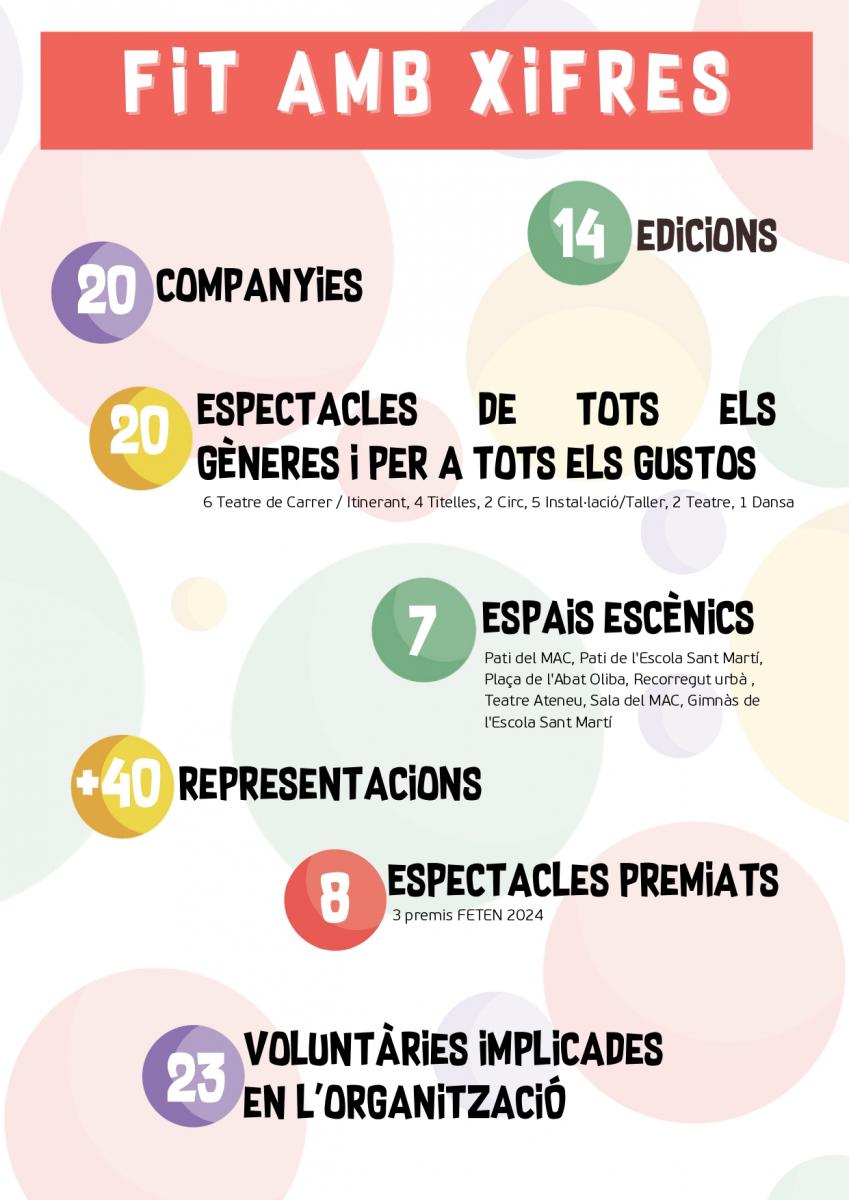 Malgrat les inclemències meteorològiques que van obligar a fer canvis d’última hora, el FIT Festival es va acabar ahir amb un balanç positiu. Gràcies als espectadors de Cerdanyola i municipis del voltant, va haver-hi una notable assistència a tots els espectacles. Ja amb la mirada posada en l’edició del 2025, es compliran 20 anys de la primera edició del festival i se celebrarà la 15a edició.