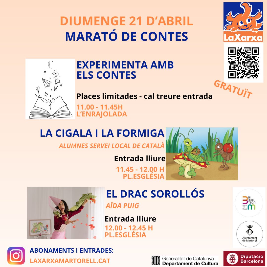 La Xarxa Corbera organitza per setè any consecutiu un Marató de Contes solidaris on la recaptació de les entrades solidàries a 2€ cadascuna es destinarà a reconvertir-los en possibilitat d'accés als espectacles infantils i familiars que es programin a Corbera per les famílies beneficiaries del serveis socials.
