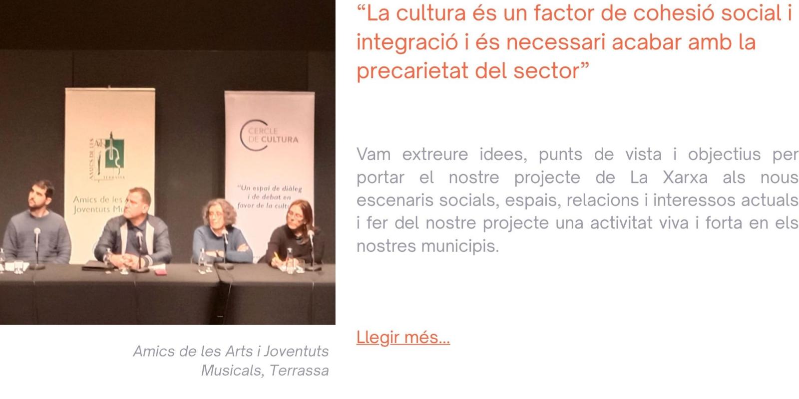 Tota aquesta tasca comunicativa dona els seus resultats, assolint major visibilitat de la Fundació Xarxa dins del sector, rebent moltes invitacions en esdeveniments culturals del país i que ens augmenten cada any, i als que assistim molt gustosament en nom i representació d’aquesta gran família que és La Xarxa. Tenim el convenciment que ens aporta a tot el col·lectiu augmentar la nostra presència i posicionar-nos com referents del sector.