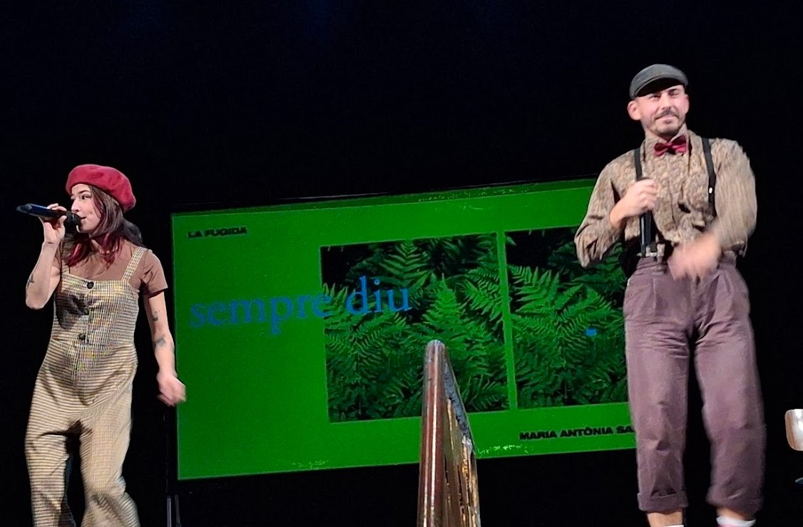 La segona proposta del dia venia de Cinc Cèntims Teatre, una companyia que al Tast d'espectacles 2024 havia presentat el seu espectacle Cap a Miranda (o l'últim nas de l'any) i havien fet de presentadores de la gala de matí. Enguany, ens van oferir un tastet del seu nou espectacle Mular (o la gran captura). Una proposta que no et deixa indiferent, amb una escenografia espectacular i una posada en escena fantàstica i que parla de la por al que és diferent, del coratge de desafiar les normes i de com un esdeveniment extraordinari pot sacsejar els fonaments de la comunitat.
