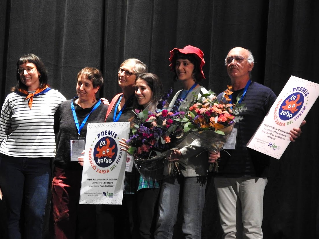 El Premi a la companyia emergent va ser per la CIA La Cabuda, amb el seu espectacle Mal de closca. Una proposta que es va estrenar divendres 26 de setembre al Fitkam, creada pels Farrés Brothers i CIA, amb text de Jordi Palet. Parla de història de la tortuga Joan, que té por d’anar al metge. La proposta aborda l'emoció de la por en la infància intentant, d’una manera lúdica, trobar eines per transitar-la. És un espectacle per reviure, amb humor i tendresa, els temors infantils al voltant de la medicina. La Clara i la Núria, actrius de la companyia, van ser les encarregades de rebre el premi.