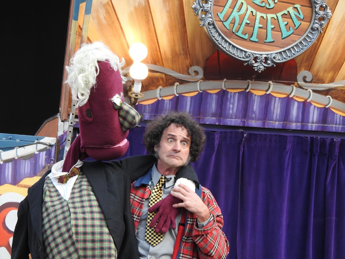 Espectacle de circ, clown i titelles a l'exterior del Teatre El Progrés amb en Ton Muntané