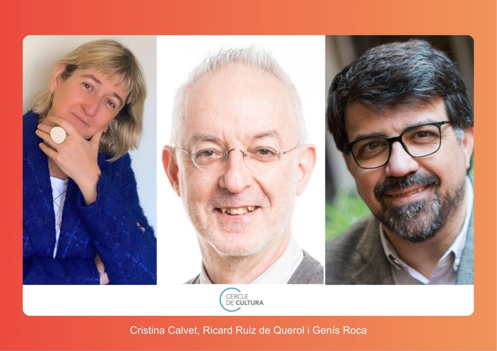 La taula rodona parlava sobre cultura i disrupció tecnològica, amb Ricard Ruiz de Querol, científic del sector tecnològic amb publicacions sobre la intersecció entre tecnologia, filosofia i Societat, Cristina Calvet, advocada especialista en el sector de la cultura, i Genís Roca (President d’Accent Obert), consultor i professor universitari especialitzat en processos de transformació empresarial, desenvolupament de negoci i cultura digital. L'acte va ser moderat per Jordi Pardo, president del Cercle de Cultura.